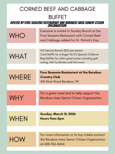 Hosted by Fore Seasons Restaurant and Baraboo Area Senior Citizen Organization
